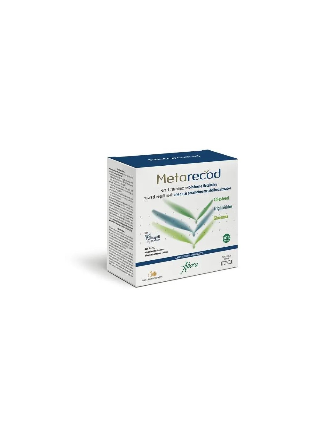 No ingerir el producto en caso de alergia o hipersensibilidad individual a una o más de las siguientes materias primas de las que se derivan los componentes del producto: Avena sativa, Opuntia ficus-indica, Amorphophallus konjac, Althaea officinalis, Linum usitatissimum, Tilia platyphyllos, Cichorium intybus, Stevia rebaudiana, goma arábiga . No hay datos experimentales sobre el uso de Metarecod en el embarazo y la lactancia. Sin embargo, por la naturaleza de sus componentes no existen contraindicaciones para la toma del producto en estas condiciones. Se recuerda que el tratamiento de disglucemias, dislipidemias, sobrepeso y síndrome metabólico en el embarazo se debe efectuar bajo supervisión médica. Se recomienda tomar el producto separadamente de los medicamentos (como mínimo dos horas) para evitar una posible interacción con su absorción.